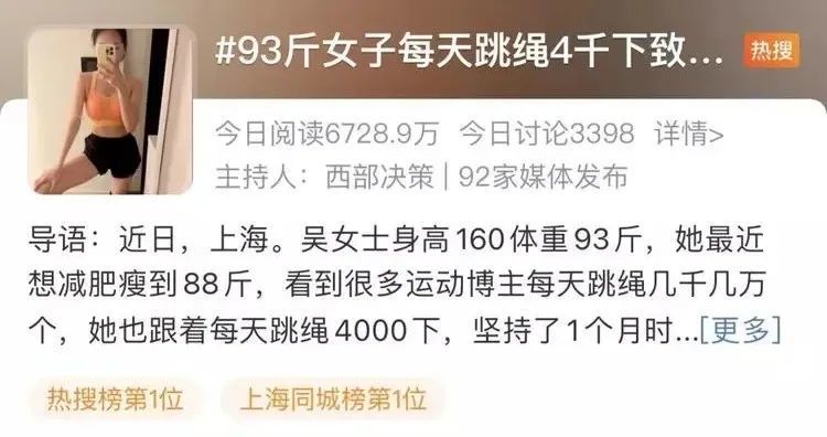 正文 真人实测:跳绳时,膝关节要负荷2~3个你 XX医院-内科医师-张三 V管理员 /2022年 /0 评论 /417 阅读 0718 此篇文章发布距今已超过1241天,您需要注意文章的内容或图片是否可用!XX医院-内科医师-张三:擅长治疗妇科、儿科、高血压等疾病。科室联系电话:0535-2222222 跳绳大概是最经济实惠又方便的运动了,它几乎不受时间、地点、技术的限制,只要准备一根绳,就能锻炼全身。但如果姿势不对,跳绳对膝盖的冲击力是十分大的。最近一则新闻#93斤女子每天跳绳4千下致半月板撕裂#就登上了微博热搜。 -- 展开阅读全文 --